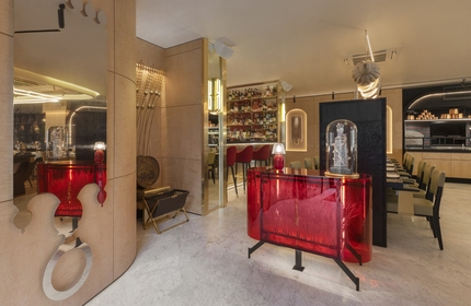Ресторан «Машенька», созданный бюро ARCHPOINT, представляет еще один взгляд на интерьерный дизайн, вдохновленный русскими традициями и народными промыслами. Правда, в нем не так много прямых цитат, а больше вольных фантазий в духе «Алисы в стране чудес», благодаря чему гости могут развлечься разгадыванием визуальных шарад.