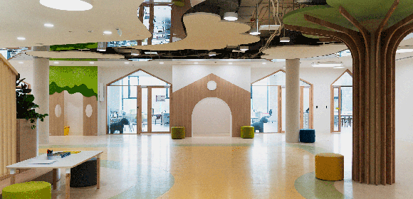 NF studio разработало интерьеры образовательного комплекса «Летово Джуниор» в соответствии с актуальными тенденциями, учитывающими потребности и восприятие детей младшего и среднего школьного возраста.