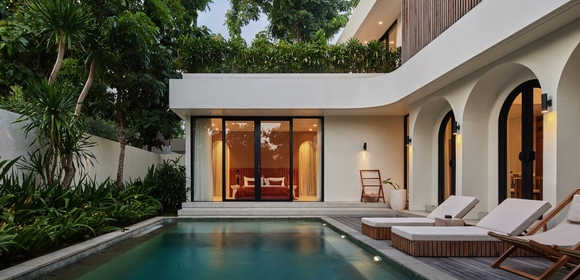Проектируя балийский отель в районе Бингина, на участке с тиковой рощей и пятиметровыми перепадами, архитекторы Lyvin Properties сохранили и деревья, и природный рельеф. Местные материалы, спокойные и плавные линии, нивелирование границ между домом и садом настраивают на созерцательный отдых и полное погружение в окружающий ландшафт.