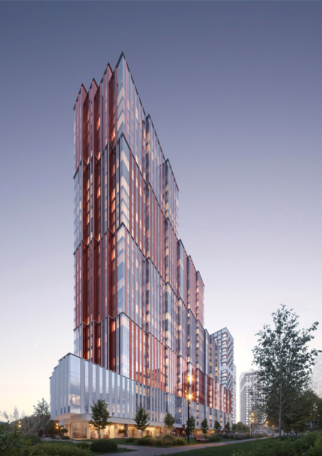 Она построена по мотивам японского сада камней. Шесть башен-«камней» ЖК STARK, разноуровневые и сдвоенные, расположены по периметру участка. Со светлыми и темными фасадами, по-разному ориентированные, как в саду камней, они по-разному выглядят, но всегда динамично – в зависимости от ракурса наблюдения. Таким образом обеспечиваются лучшие виды из окон. Седьмая башня выходит на улицу Русскую выразительным силуэтом и маркирует въезд в жилой комплекс.