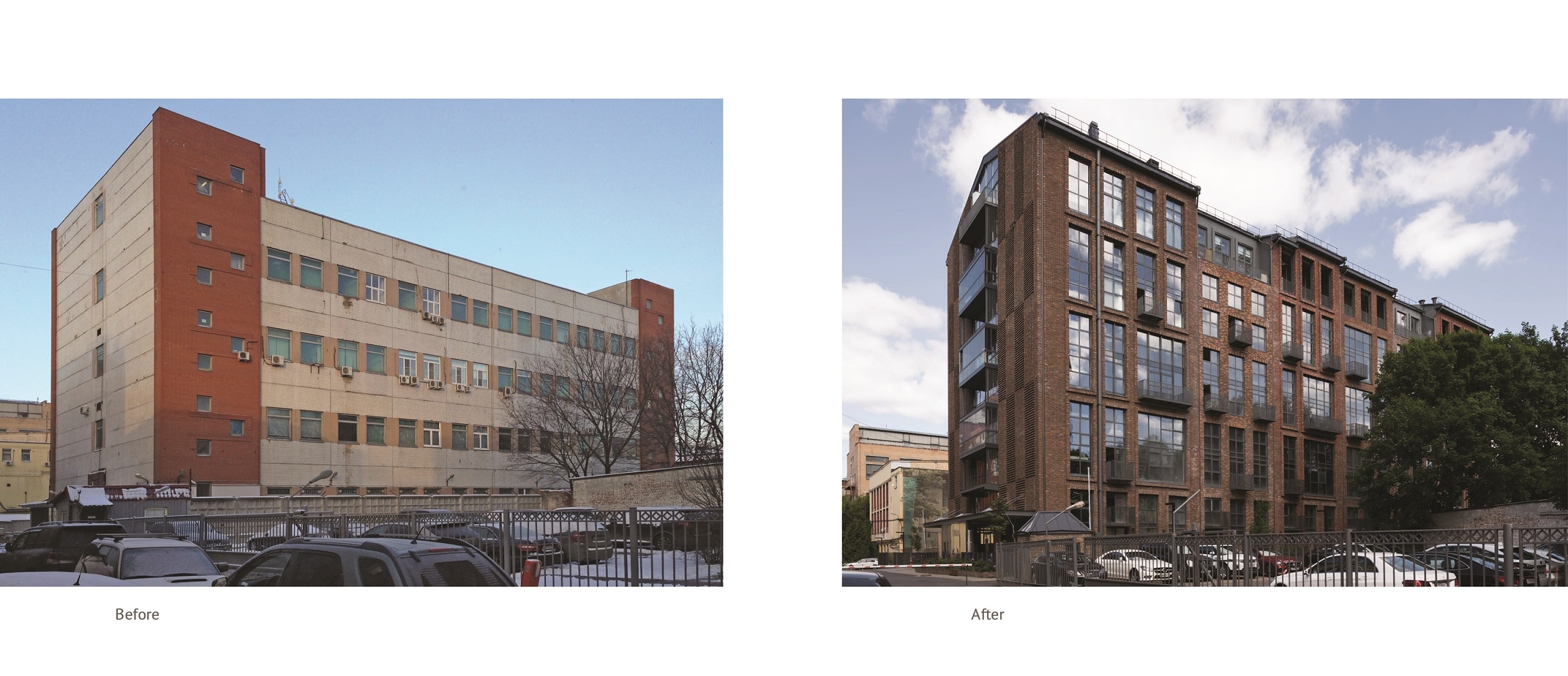 Продолжением нашей работы c территорией стало полуразрушенное здание хозяйственного назначения, расположенное по соседству и вплотную примыкающее к музейному парку. В нашем проекте его конструкции преобразованы, сделана структура и типология здания, нетипичного для Москвы и особенно для центра города. Малоэтажное, оно состоит из таунхаузов: одно-, двух- и трех уровневых апартаментов. Некоторые с отдельными входами с улицы и палисадниками. Мансарды с двусветными пространствами и просторными террасами. На первом уровне – крытый паркинг.