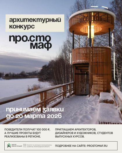 Центр компетенций Ленинградской области совместно с комитетом по ЖКХ запускает конкурс малых архитектурных форм «ПростоСТОмаф». Мероприятие приурочено к юбилею Ленобласти. Победители получат приз 100 000 рублей, а лучшие проекты будут реализованы в регионе в 2027 году.