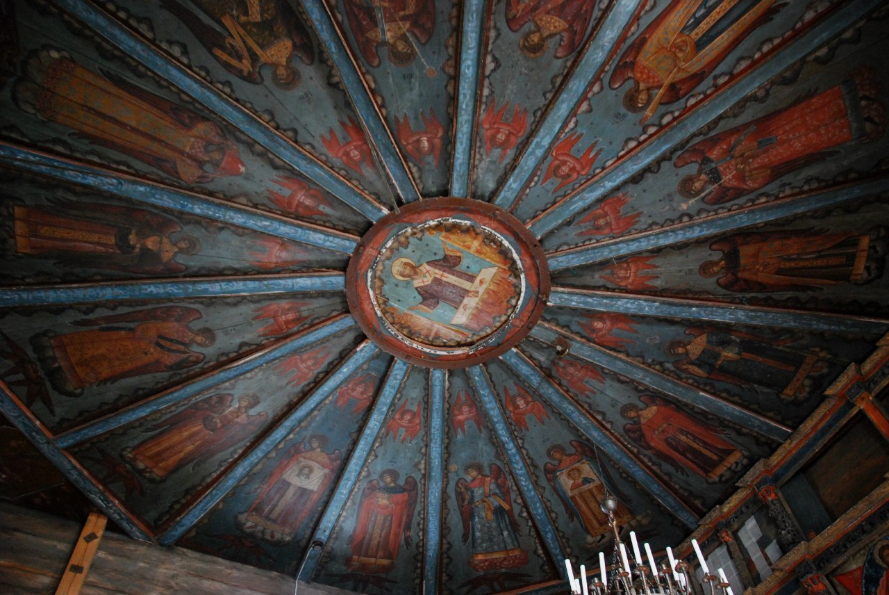 A “heaven” is the ceiling structure found in wooden churches and chapels from the late 17th to the 19th century. Researchers associate the emergence of this form with the appearance in the North of new types of wooden churches – larger in scale – and with the architects’ desire to reproduce a painted dome similar to those in stone churches (“The Architects of the Russian North”).