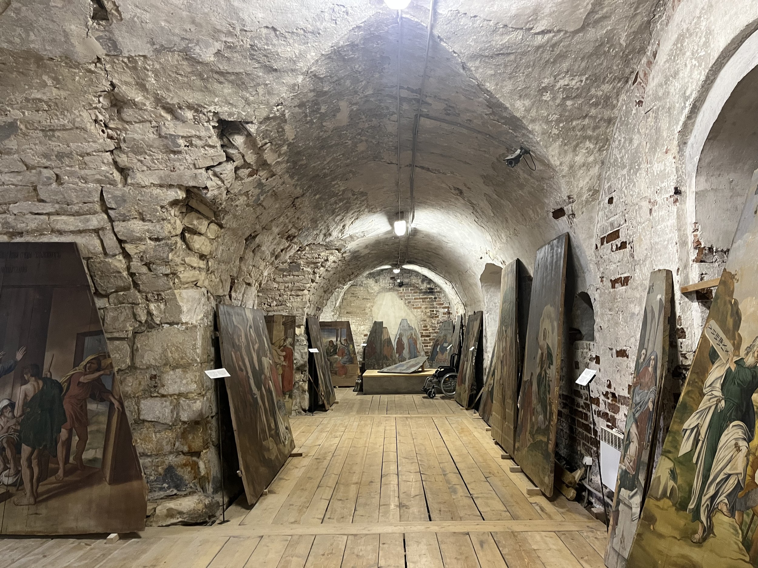 The “heavens” form the centerpiece – and the most valuable part – of the collection, standing at the intersection of architecture and painting. Once removed from the church interior, monumental painting inevitably loses some of its sacred meaning and emotional power. In the Kargopol Museum, for instance, fragments of “heavens” are displayed on the floor of the lower level of the Cathedral of the Nativity: visitors can examine the paintings up close, but the unity of the composition is lost, and this kind of “deconstruction” confuses and muddles the perception.