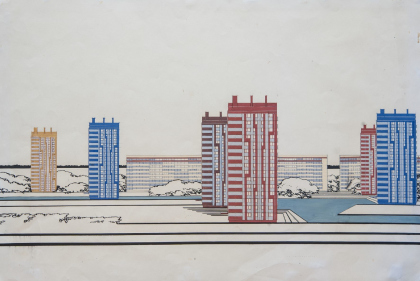 Е. М. Полторацкий. Проект колористического решения квартала № 28 Сосновой Поляны. 1975. ГМИ СПб/Изображение предоставлено организатором