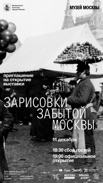 12 декабря Музей Москвы открывает новую выставку «Зарисовки забытой Москвы», где будут представлены жанровые фотографии из музейных фондов, запечатлевшие жизнь города и горожан конца XIX – начала ХХ века. Экспозиция, вдохновленная самым известным произведением о столице – книгой «Москва и москвичи» писателя и журналиста Владимира Гиляровского, покажет оживленные московские улицы, площади и рынки, а также жителей за их привычными делами.