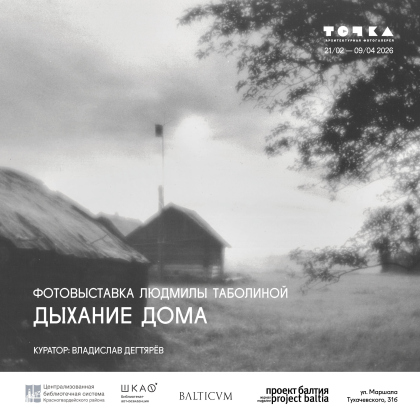 21 февраля 2026 года в 16:00 в галерее «Точка» (совместный проект Библиотеки и арт-резиденции ШКАФ и издательского дома «Балтикум») состоится открытие персональной выставки известного мастера светописи Людмилы Таболиной «Дыхание дома». Куратором выступил кандидат культурологии Владислав Дегтярев.