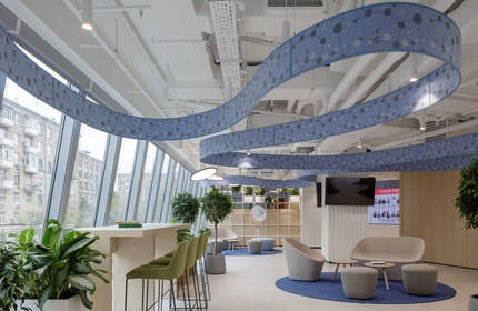 Офис продаж жилого комплекса Moments транслирует покупателям заложенные проектом ценности. Близость природы, красота смены сезонов, изящество архитектурных решений интерпретированы через прозрачный куб, внутри которого растет оливковое дерево. В дальнейшем здание сменит функцию и станет частью входной группы общеобразовательной школы.