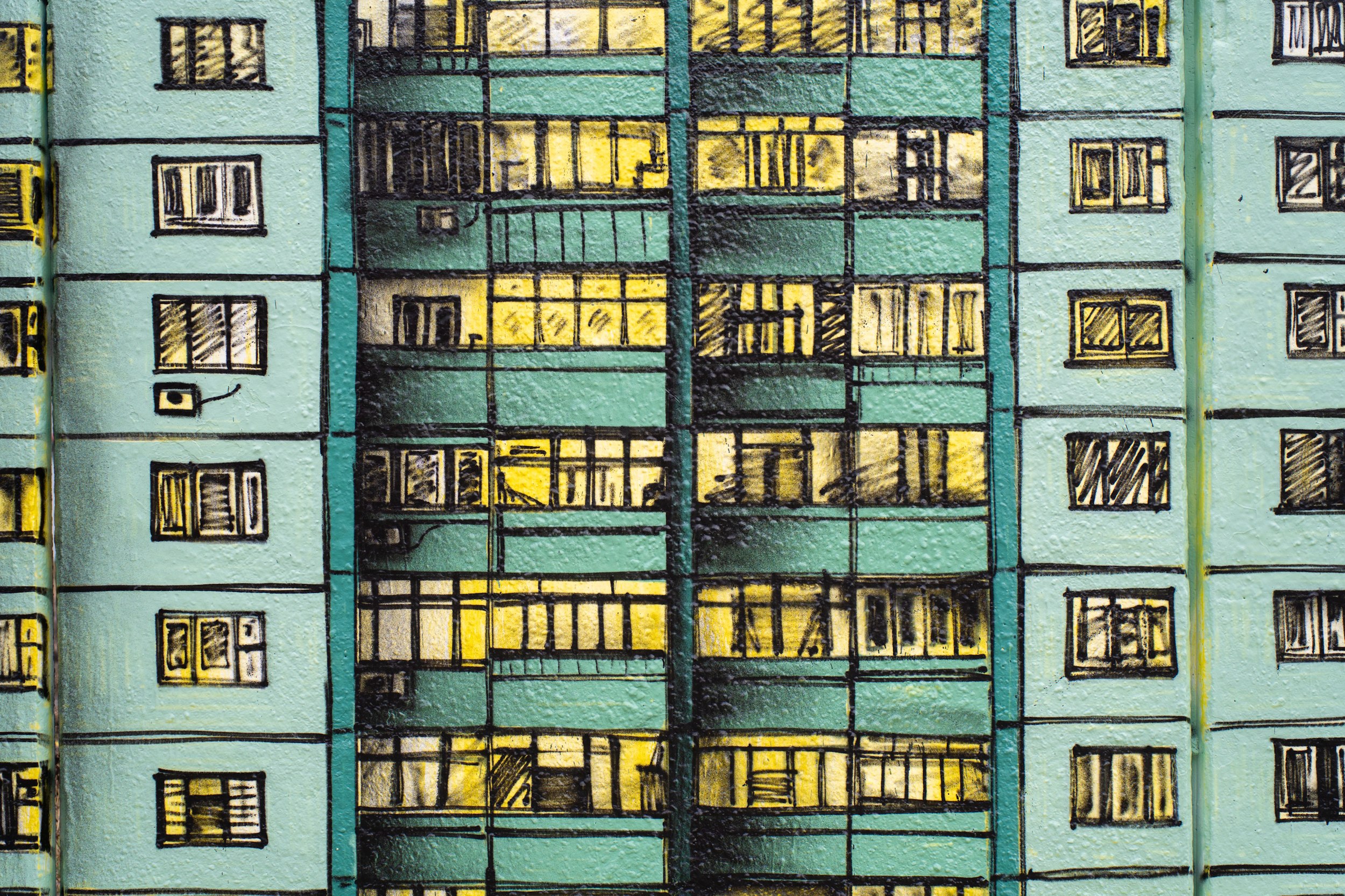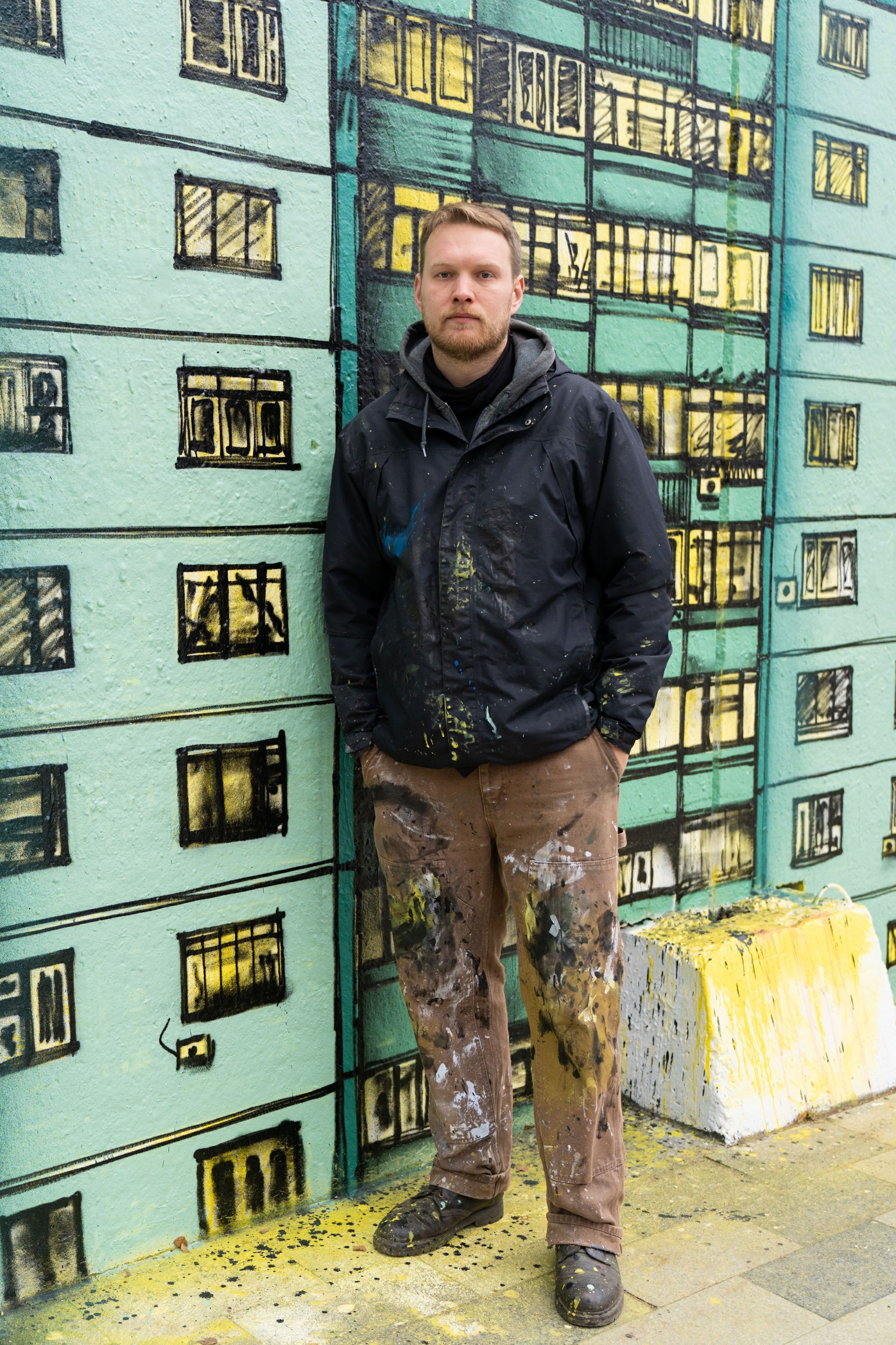 Картина Никиты Dusto интерпретирует типичный многоквартирный панельный дом – один из самых распространенных архитектурных объектов на территории России и бывших советских республик.