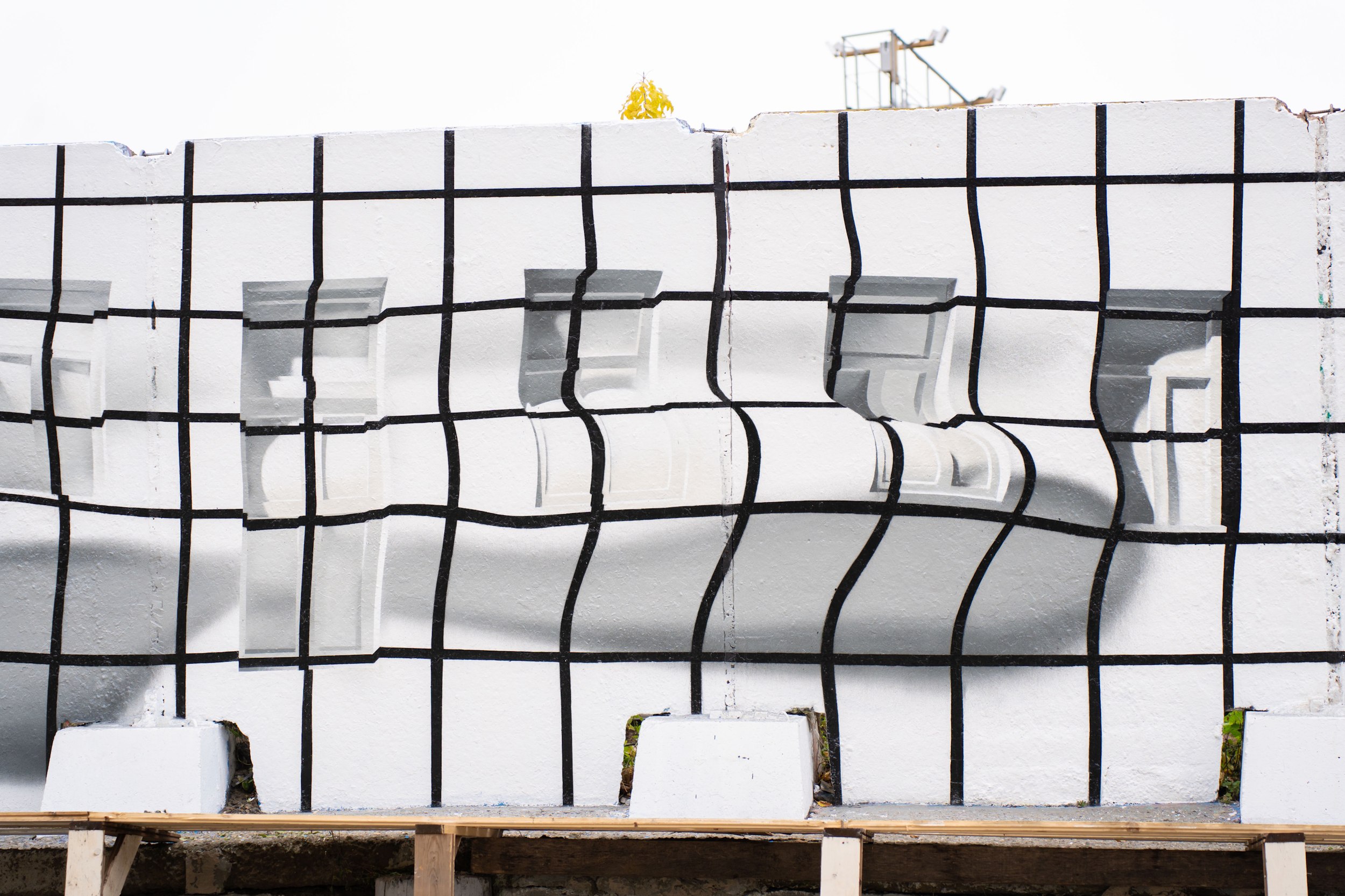 «Стена начинает работать как сцена – место, где можно одновременно увидеть и структуру, и образ, и движение, а город открывается в новом измерении – как живое пространство, построенное на пересечении взглядов. В данном случае мы рассматриваем город как непрерывный паттерн, в котором соединяем разную архитектуру и разных художников. И я попросил сделать совместную работу о взаимодействии художников и города», – куратор Алексей Партола.