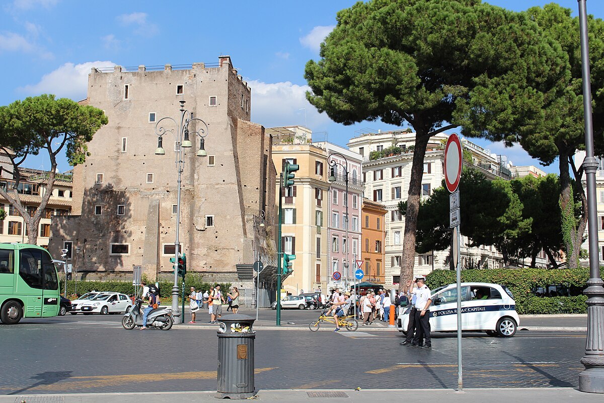 В 1348 году башня сильно пострадала от землетрясения. В XVII веке при папе Александре VIII были проведены реставрационные работы, в ходе которых добавили массивные контрфорсы для укрепления стен. В последующие века башня постепенно теряла свое первоначальное окружение: после прокладки улиц – Виа Кавур и Виа деи Фори Империали – она оказалась изолированной от прежней городской застройки. Ее высота после разрушений сократилась вдвое и сегодня составляет около 29 метров.