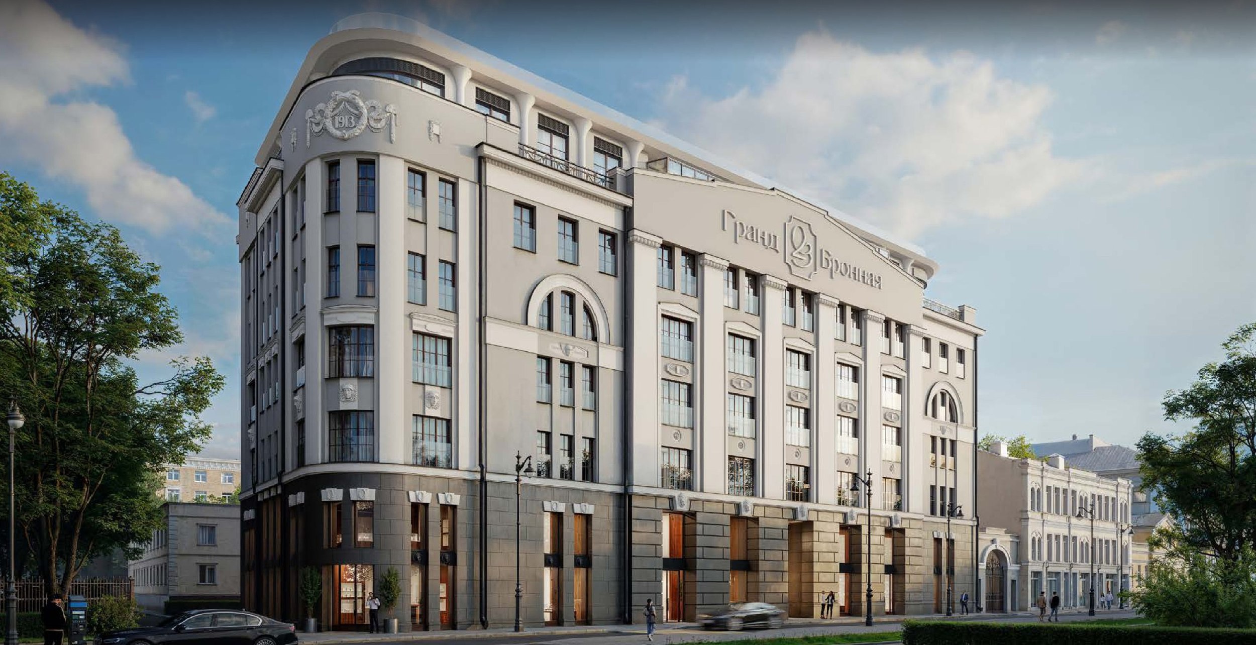 Смотря на рендеры, можно сделать вывод, что утраченные элементы исторического облика в целом восстанавливаются (надпись в центральном аттике, правда, будет другая). Но появляются и радикальные дополнения. Основное – это надстроенный этаж с террасой. С главного фасада он отступает вглубь, хотя и выдает свое современное происхождение стилизованными полуколоннами и стеклянным парапетом.