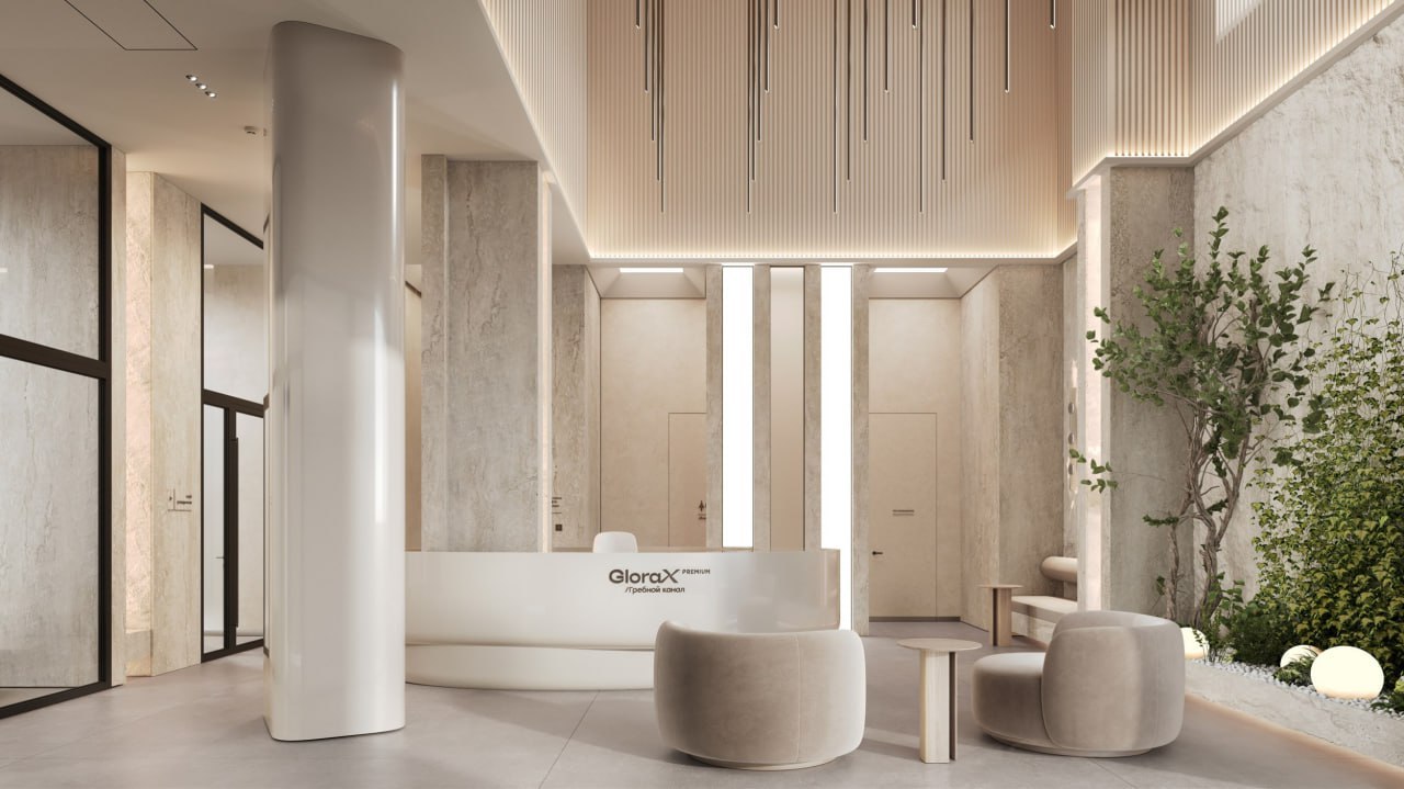 - Дизайн интерьера МОП ЖК «Гребной канал»