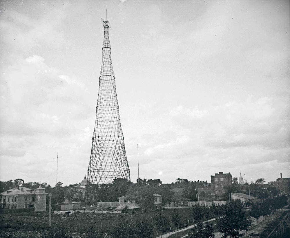 Шуховская башня была построена в 1920–1922 годах как радиобашня. Изначально Владимир Шухов задумывал 350-метровую конструкцию из девяти секций, но из-за дефицита металла удалось возвести только шесть, высотой 150 метров.
