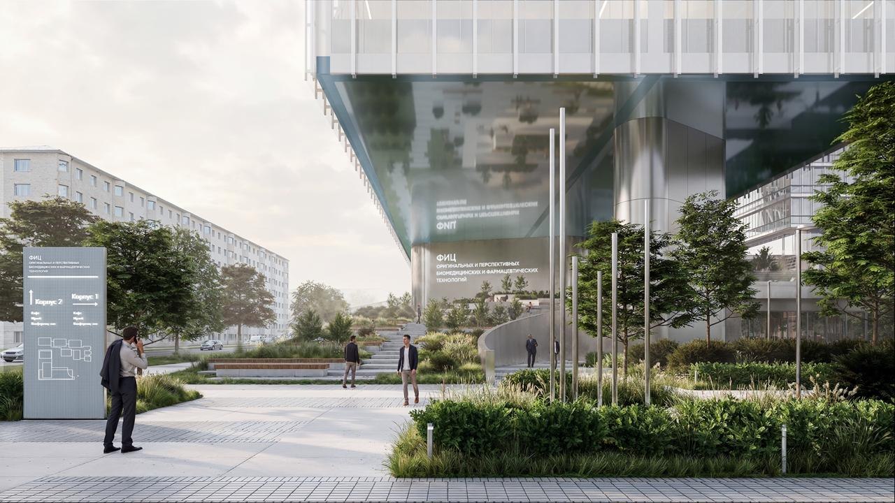 Речь о научном кампусе на севере Москвы (район Сокол, ул. Балтийская, 8) на месте существующего здания центра. ФИЦ объединит лабораторные корпуса, исследовательскую инфраструктуру и опытно-промышленное производство лекарственных средств. В целом – это такой флагман российской науки и архитектура должна была это отразить.