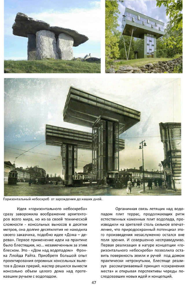 Утверждается, что «самым актуальным вопросом архитектуры на нынешнем этапе развития человечества должен быть вопрос непротиворечивого, устойчивого развития и интеграции биосферы с искусственной средой – ноосферой». В этом заложена мысль о синтетической природе человеческого мышления и архитектурного в частности. Подтверждение находится в физиологическом строении человеческого мозга. Правое полушарие отвечает за эмоции, интуицию , образное художественное мышление, левое за логику и анализ. Из этого делается вывод о том, что способность человека ( архитектора) к интеграции рационального и образного постижения действительности заложена самой природой. Развивая эту мысль, автор делает вывод о том, что первостепенное значение архитектуры как науки имеет накопление научных знаний, а искусства – творческая практика, накопление выразительных архитектурных образов и приёмов. Подобная схематизация природы архитектурного творчества потребовалась автору для того что бы вычленить идею интеграции из общего потока архитектурного творчества, назвав имена известных и выдающихся российских архитекторов, творчество которых подтверждает особый тип их профессионального мышления в соответствии с принципами природоинтегрированной архитектуры. Указываются семь принципов:
