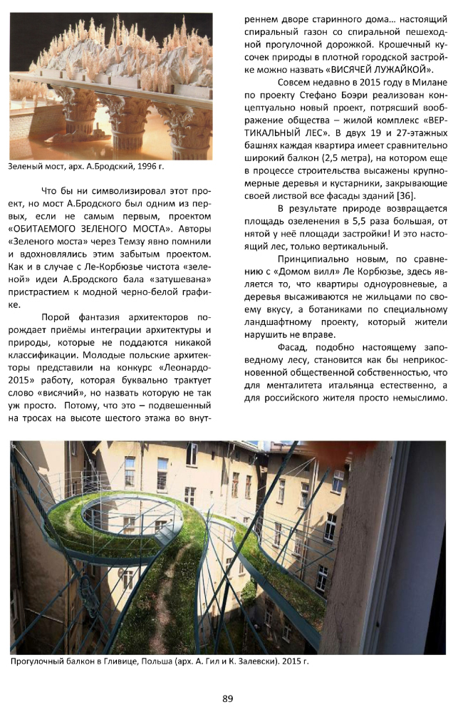 В книге даётся анализ движению «зелёные здания», получившее распространение во второй половине XX века, результатом которого стало появление т.н. «зелёных стандартов» (BREEAM, LEED, DGNB). Широко поддержанное мировой практикой движение за строительство т.н. «зелёных зданий», стало стимулом к развитию инженерной мысли, отодвинув вопросы архитектуры на второй план. Развитие инженерных систем и строительных технологий способствовало определённому сокращению влияний зданий на окружающую среду, но высокой ценою – значительным удорожанием строительства в системе рыночных отношений и доминированием научного подхода над искусством архитектуры. Автор выдвигает тезис: «Не отказываясь от своего предназначения служить человеку и обществу архитектура методами искусства может разрешить неразрешимые противоречия».