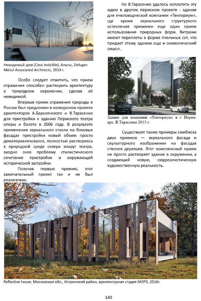 В качестве доказательства этого тезиса автор обращается к многовековой истории архитектуры, в которой «живая творческая практика Востока и Запада, задолго до появления «Зелёных стандартов» накопила арсенал приёмов и принципов мирного сосуществования архитектуры и природы путём их интеграции». Автор не обходит вниманием естественные процессы преодоления пороков сверхурбанизации, например появления загородного жилья, именуемого у нас «Дачей» или возникновения идеи города-сада. Отправной точкой в рассуждениях о принципах природоинтегрированной архитектуры становится книга Бренды и Роберта Вейл «Зелёная архитектура. Проект устойчивого будущего». В ней указываются шесть принципов, соблюдение которых обеспечивает устойчивость здания в природной среде опираясь не только на энергосберегающие технологии, но и композиционные приёмы и взаимодействия архитектуры с окружающей средой и ландшафтом. Однако автор, соглашаясь с изложенными принципами, в своей книге подвергает сомнению полноту предложенных принципов «устойчивой архитектуры» и принятую терминологию и определения, утверждая, что термины «Зелёная архитектура», «Эко-архитектура», «Экоустйчивая архитектура», «Устойчивая архитектура» являются системно ограниченными, т.е. не в полной мере отражающими пути и способы интеграции природы и архитектуры. Свой поиск новой терминологии он начал с определения самого понятия Архитектура. Вступая в справедливую полемику в определении Архитектуры как «искусство и наука строить, проектировать здания и сооружения, а так же совокупность зданий сооружений , создающих пространственную среду для жизни и деятельности человека», распространяемое Википедией. Автор затрагивает важнейший вопрос о статусе архитектурной деятельности и об её искаженном представлении в нашем обществе. В этом определении Архитектура, архитектурный замысел и проект выступают вторичным компонентом по отношению к искусству строить. Это искажённое представление об архитектурной деятельности, к сожалению, укоренилось в современном обществе и сознательно культивируется в интересах строительного лобби. Своё определение Архитектуры, как вида профессиональной деятельности, в контексте рассматриваемой темы, автор представляет как «искусство органичного преобразования естественной природной среды (биосферы)в безопасную, экологичную, социально и духовно полноценную среду жизнедеятельности человека и общества (ноосферу)». Очевидно, что предлагаемое определение искусства архитектуры обладает функционально-прагматическим смыслом и направлено на расширения понятия Архитектура.Кроме того, автор предлагает ввести достаточно неопределённое понятие «духовная полноценность среды». Содержащееся в Большой Советской Энциклопедии определение Архитектуры, где говорится о системе зданий и сооружений, формирующих пространственную среду для жизни и деятельности и об искусстве создания сооружений по законам красоты, автор признают устаревшим.