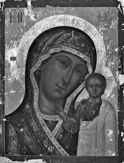 Живописи иконы присущи все характерные особенности индивидуальной творческой манеры Уланова. Лики выполнены чрезвычайно мягко, с помощью тонких переходов от зеленоватогосанкиря к золотистым вохрениям. Хотя верхние слои живописи ликов сохранились плохо, тем не менее, в их письме присутствует прием, характерный именно для позднего творчества мастера – тонкие мелкие графичные белильные оживки, проложенные в местах наиболее сильных высветлений (на шее и в углах глаз Богоматери, лбу, подбородке и над верхней губой и у уголков глаз Младенца). Эта интересная особенность, которая присуща традиционной доживоподобной манере иконного письма, среди мастеров Оружейной палаты встречается только у Кирилла Уланова в его позднем, поволжском этапе творчества. Икона была написана, судя по формулировке автографа, для некоего приходского храма. Сведений о жизни и иконописной деятельности Кирилла (Корнилия) Уланова в 1720-х годах очень мало, что затрудняет предположения о возможном происхождении памятника. С осени 1719 по 1723 год мастер жил в Нижнем Новгороде, где проживал при Архиерейском доме и по указу архиепископа Питирима свидетельствовал иконописцев нижегородской епархии. Известны факты и его иконописной деятельности за это время. Затем точное место пребывания иконописца устанавливается пунктирно. В 1726 году он вместе с братом Василием и учениками работал в Троицком Белбажском монастыре, где писал много икон для соборного храма (Казанская в их перечне не упоминается). Скорее всего, в это время художник вновь проживал в Кривоезерской обители близ Юрьевца «на покое», так как его последние подписные произведения 1727-1728 годов происходят из юрьевецких храмов.