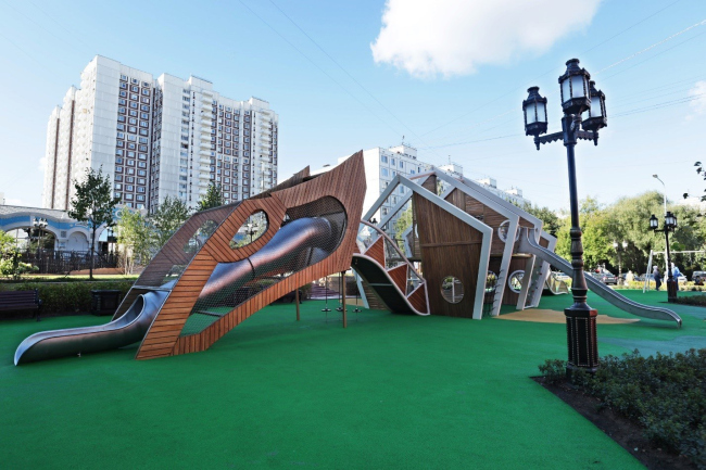 Например, игровой комплекс , изначально разработанный для Казани, но реализованный в другом месте. Нам поставили задачу создать что-то в национальном татарском стиле. Мы изучили тему и предложили образ дракона. Хотя проект для Казани не состоялся, идея не пропала – комплекс установлен в Москве, в Сумском проезде, в рамках программы «Московские сезоны».