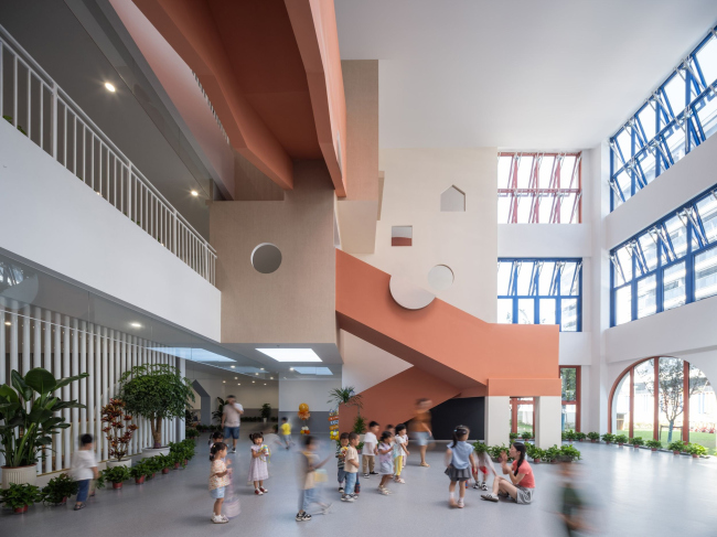 В детском саду в Ханчжоу по проекту бюро CLOU нет обилия ярких цветов: архитекторы рассматривают здание как нейтральный фон для игр и учебы малышей.