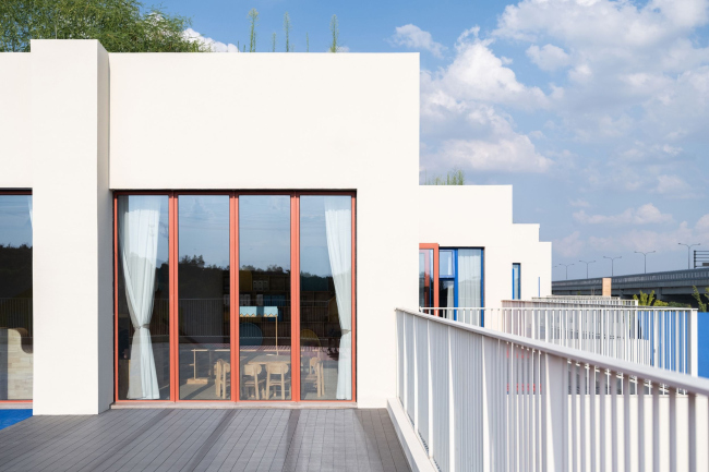 Часто детские учреждения делают яркими, многоцветными. Здесь архитекторы осознанно отказались от такого хода: преобладающий белый цвет сочетается с точечными акцентами насыщенных цветов из . Таким образом детский сад стал фоном для малышей, играющих, обучающихся и познающих окружающий мир.
