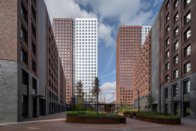 Не менее ответственное место в речном фронте Москвы занимает ЖК «Ривер Парк» (II очередь), авторы которого, бюро ADM, также обратились к кирпичу как основному фасадному материалу и создали впечатляющую композицию с каскадными террасами и двухуровневым городским пространством. Главное здание комплекса, названное «Домом-маяком», демонстрирует возможности кирпичных фасадов в создании сложных архитектурных форм.
