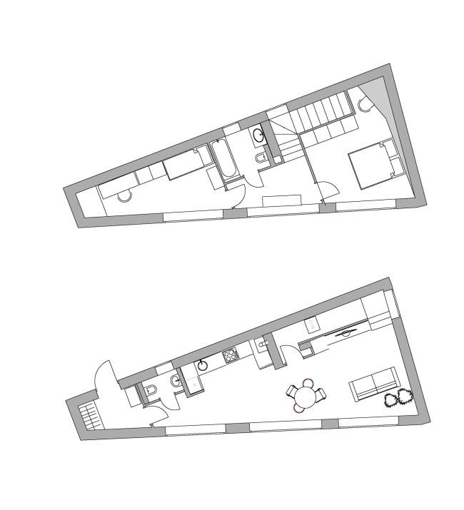 Описание предоставлено архитекторами Основной вызов был в размещении дома на маленьком участке треугольной формы. Проанализирован опыт японских архитекторов и перебрав множество вариантов планировок, Анастасия Степанова нашла единственно возможный.