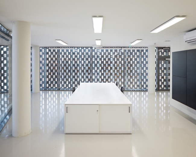 Еще одной задачей было включить в ансамбль два бетонных бункера, построенных в 1980-е. Их фасады обработали специальным патинирующим составом, который, проникая внутрь, реагирует с цементом и дает характерный красно-коричневый оттенок умбры.