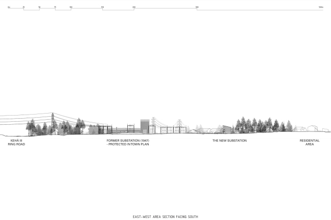 Авторами непростого проекта выступило местное бюро Kivinen Rusanen Architects (ранее носило название Virkkunen & Co), для которого это уже не первая работа с объектами энергетики: портал Архи.ру уже писал про их очень близкий по духу и задачам проект подстанции в Иматре, выполненный для того же заказчика. Главными целями было сохранить преемственность и обеспечить визуальное единство всех частей проекта, а также «подружиться» с соседним жилым районом.