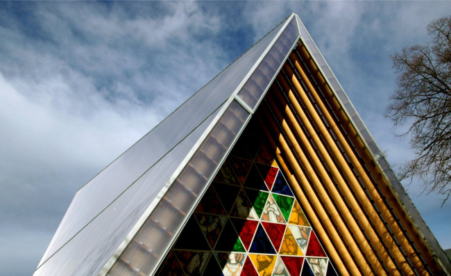 Особенно высокие эксплуатационные требования предъявляют к поликарбонату разного рода экспериментальные, «экстремальные» сооружения – и он с честью выдерживает эти испытания. Классический пример – быстровозводимые постройки Сигэру Бана для пострадавших от природных и антропогенных бедствий по всему миру. Партнером для его «фирменных» картонных труб часто выступает именно поликарбонат, легкий и прочный, удобный в транспортировке и монтаже. И речь не только о временных постройках. Так, из матовых, «молочных» листов выполнено покрытие кровли собора новозеландского Крайстчерча, пропускающее внутрь рассеянный свет; это культовое сооружение с каркасом из картонных труб рассчитано на полвека, пока пострадавший от землетрясения город не выстроит новый, постоянный храм.