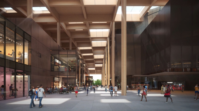 В своем предложении бюро MVRDV и Huayi Design рискнули даже немного изменить условия конкурса. Предполагалось, что с северо-запада границей всего комплекса станет загруженная автомагистраль, но архитекторы решили соединить свой участок с зеленой зоной за эстакадой, запланировав под ней скейт-парк, площадки для мини-баскетбола, беговую дорожку, столы для пинг-понга и детскую площадку. Довольно популярное в последние годы решение позволит сохранить проницаемость и добиться связности городской ткани.Спортивный парк Пиншань и Национальный центр бадминтона в Шэньчжэне© MVRDV