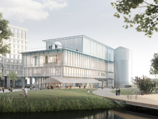 Тем не менее, в DO Buro видят широкие перспективы применения поликарбоната в различных типологиях: от временной архитектуры и выставочных пространств до общественных зданий и торговых центров. Так, для Общественного центра в Прокшино (в 2022 году DO Buro выиграло конкурс в сотрудничестве с IND) архитекторы разработали проект современного здания на набережной у озера, где поликарбонат играл важную роль в создании архитектурного образа. Несмотря на то, что проект находится в районе типовой застройки, архитекторы создали выразительное общественное пространство, доказывая, что сочетание металла и поликарбоната может работать не только в хай-тек архитектуре, но и в более камерном, соседском контексте.