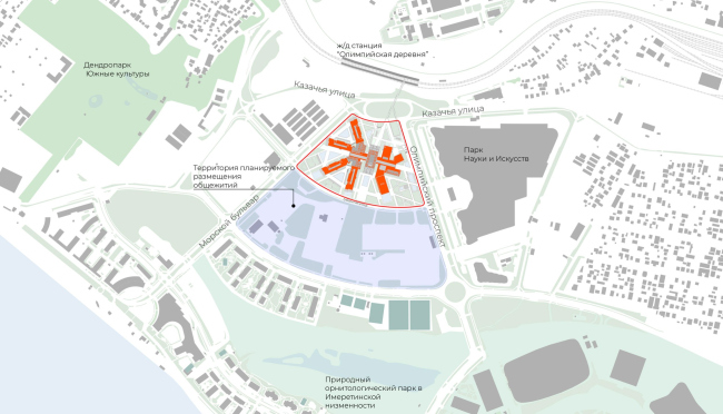 Здание проектируемого университета предлагается разместить в северо-западной части федеральной территории «Сириус». Объект состоит из центрального вестибюля с амфитеатром, пассажа с коворкингами, а также общеуниверситетских блоков, включающих актовый зал на 750 мест, столовую, административно-хозяйственный корпус, библиотеку и учебные аудитории. Каждый блок имеет универсальную модульную структуру. Всего модулей шесть по количеству научных центров.