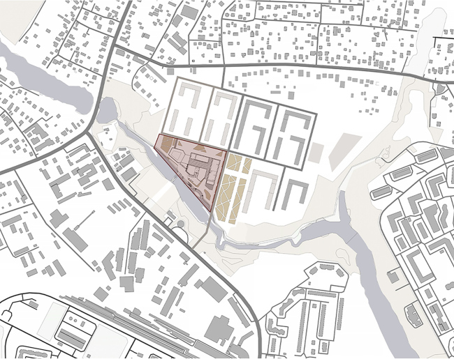 Проектом предусмотрены мероприятия по развитию и благоустройству прилегающей территории: благоустройство набережной, создание бульвара и парка, пешеходный мост через реку, соединяющий два района города.