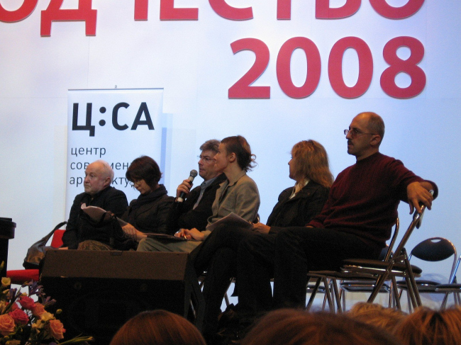 В обсуждении приняли участие Илья Лежава, Александр Скокан, Алексей Клименко, Александр Кудрявцев, Борис Левянт, Марина Хрусталева, Рустам Рахматуллин, Елена Григорьева, Хосе Асебильо, и Алессандро Де Маджистрис. Первый вопрос, с которым ведущая круглого стола Ирина Коробьина обратилась к участникам дискуссии – «можно ли примирить интересы старого и нового?» – прозвучал как-то риторически. И тем не менее, аудитория разделилась на сторонников принципиального «да» и «нет». По словам Рустама Рахматуллина, «старое и новое разводятся законами…. Новое должно развиваться на поле, не описанном законом о наследии», тут важно еще, заметил Рахматуллин, доверять прокурору, чтобы закон исполнялся. Александр Скокан, напротив, считает, что вопрос лишь «в количествах и темпах обновления», сам же процесс не остановить. Вообще в русской культуре, считает Скокан, слово «новодел» никогда не имело негативного значения. К этому мнению был близок и Илья Лежава, для которого вопрос состоит в том, кто и как регулирует процесс обновления города. Александр Кудрявцев напомнил о профессиональной ответственности архитекторов и тех, кто строит заведомо с нарушением закона. А Алексей Клименко был убежден, что раз вопрос о сосуществовании старого и нового благополучно решен во многих странах, то и в России с ним можно справиться.