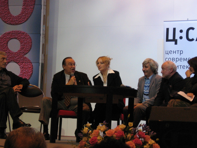 Круглый стол: Илья Лежава, Алессандро Де Маджистрис, Александр Скокан, Александр Кудрявцев, Ирина Коробьина, Алексей Клименко, Елена Соловьева, Борис Левянт, Марина Хрусталева, Елена Григорьева, Рустам Рахматуллин