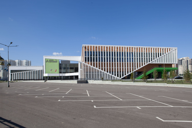 Проектом занималось архитектурно-проектное бюро Alev Group. По их задумке, панорамное остекление и навесной фасад из перфорированных алюминиевых кассет должны не только украшать здание, но и обеспечивать оптимальную освещенность помещений в разную погоду. Вечером на фасаде зажигается архитектурная подсветка.