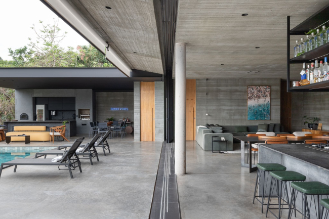 Активная поверхность бетона на фасадах и в интерьерах – основа архитектурного образа виллы в пригороде Бразилиа по проекту Studio Bruno Porto.