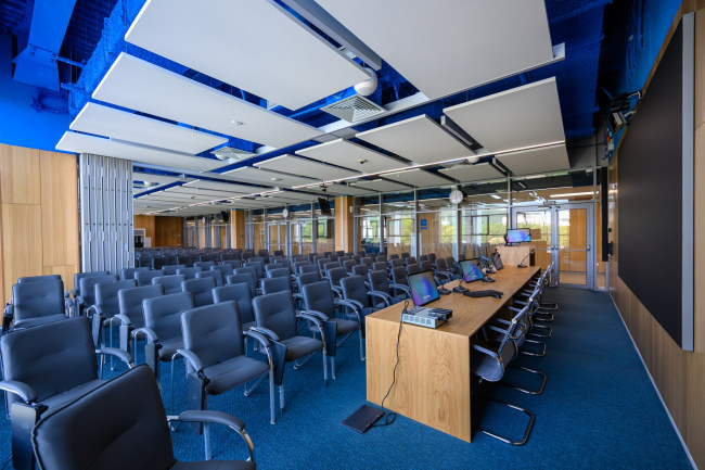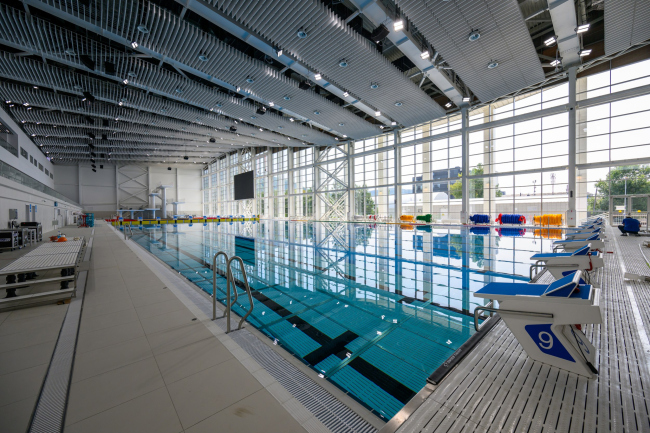 Помимо бассейнов и всех вспомогательных помещений здание включает медико-восстановительный центр, залы для сухой, хореографический и силовой подготовки, а также залы для кардиотренировок.