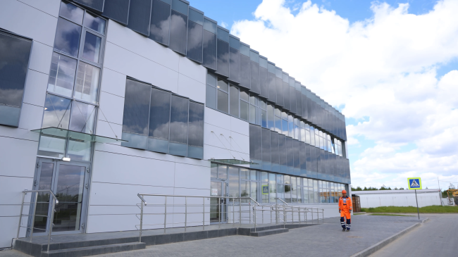 На фасаде завода размещены 264 гетероструктурных фотоэлектрических модуля суммарной установленной мощностью 58,3 кВт. Такая электростанция позволяет обеспечить частичное энергоснабжение административного корпуса.