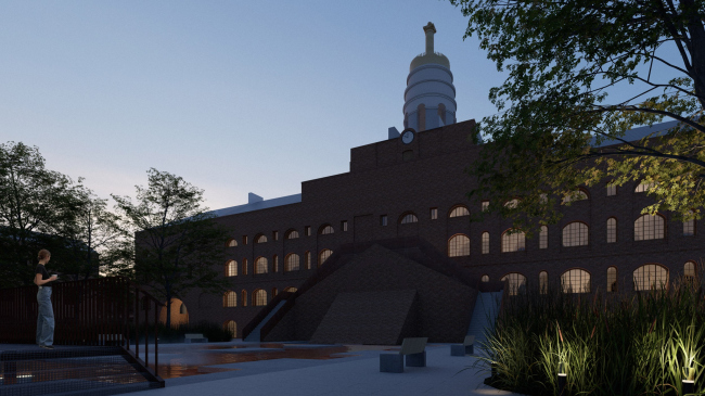 После 1928 года здания ремонтировали и надстраивали, что в итоге исказило исторический силуэт. Авторы предлагают это исправить, разобрав поздние добавления и внутренние конструкции, появившиеся в советский период. На их месте, но в пределах изначальных габаритов и за контуром исторических стен, расположатся новые объемы, способные вместить масштабные зальные функции. Таким образом, сохраняется подлинность материала, восстанавливается авторский замысел, увеличивается функциональность и экономический потенциал здания – практически идеальное сочетание для перезапуска исторического объекта.