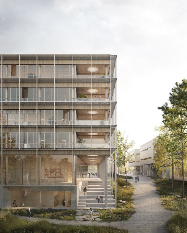 Корпус перспективных научных исследований Федерального политехнического университета ЛозанныВизуализация © Filippo Bolognese