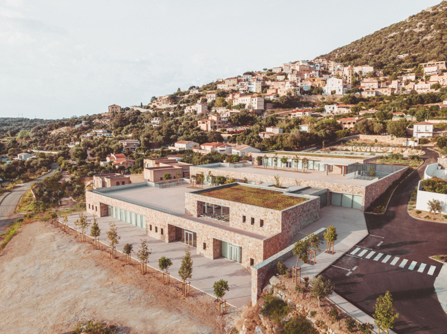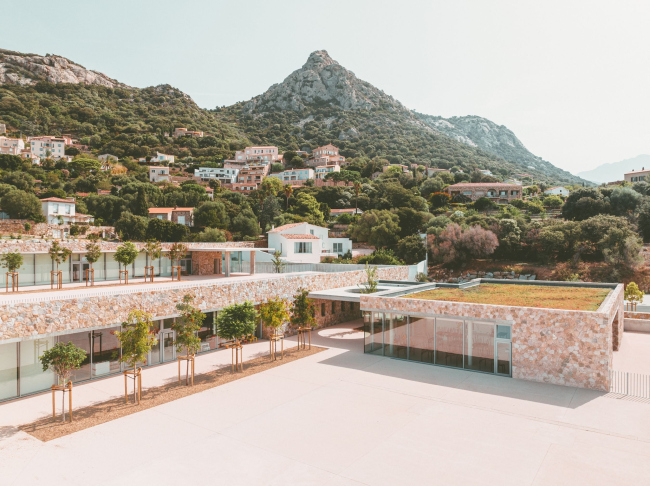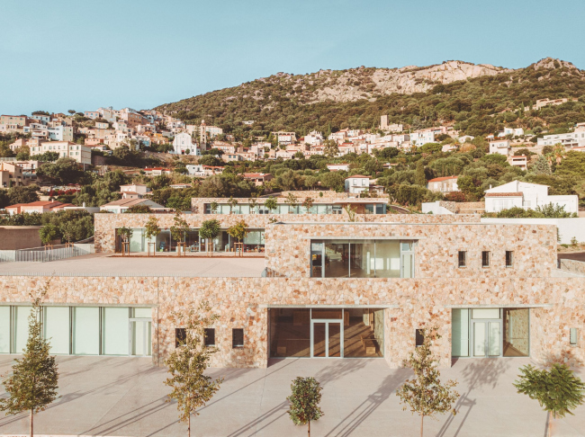 Óðîæåíêà Êîðñèêè Àìåëèÿ Òàâåëëà è åå áþðî âûäåëèëè äëÿ êóëüòóðíîãî öåíòðà öåëûé êîðïóñ íîâîé ïîñòðîéêè: îí ðàñïîëîæåí íèæå âñåãî ïî ñêëîíó, ðÿäîì ñî ñòàäèîíîì äëÿ èãðû â ðåãáè, ÷òî òîæå î÷åíü óìåñòíî. Âûøå ðàçìåùåí äåòñêèé ñàä, à íàâåðõó, áëèæå âñåãî ê öåíòðó ãîðîäà, – íà÷àëüíàÿ øêîëà. Êðîâëè èñïîëüçóþòñÿ êàê ðåêðåàöèîííûå çîíû: øêîëüíèêè èãðàþò íà êðûøå äåòñêîãî ñàäà, à ìàëûøè – êóëüòóðíîãî öåíòðà. Ìíîãîóðîâíåâàÿ êîìïîçèöèÿ âäîõíîâëåíà òèïè÷íîé äëÿ þãà Ôðàíöèè, âêëþ÷àÿ Êîðñèêó, ñõåìîé òåððàñíîãî çåìëåäåëèÿ.