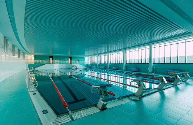 Реечный подвесной потолок в бассейне