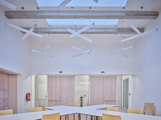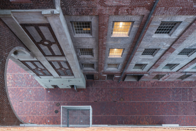 В подвале, который оказалось возможно добавить из-за более глубоких, чем предполагалось, опор, размещены общественные туалеты. На первом этаже архитекторы убрали часть стены, создав защищенный входной вестибюль и открыв узнаваемые воронки, которыми завершаются башни элеватора внизу – из них высыпалось зерно, в пространство площади и города. Важным элементом вертикально организованного внутреннего пространства стали бетонные полы со стеклянными вставками и видовые прострелы, но весь интерьер решен демонстративно спокойно, в приглушенных тонах, чтобы не отвлекать от самого исторического здания.