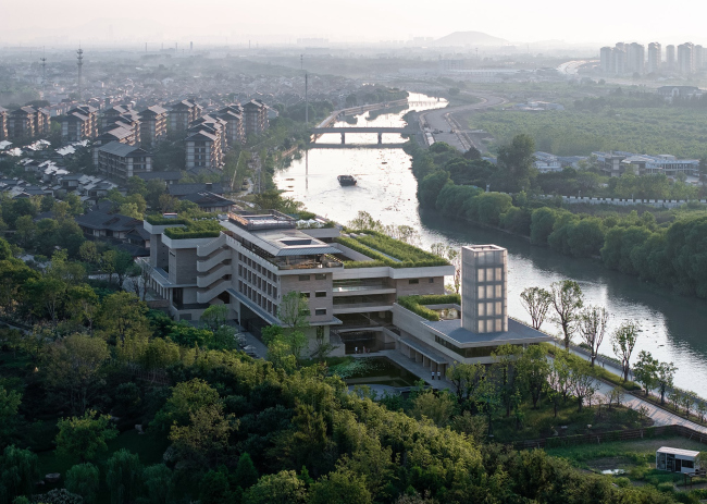 «Сижан» расположен на берегу озера Тайху, с противоположной стороны к нему примыкает оживленный рынок, рядом проходит канал Шатанган и возвышается гора Чжушань. Такой разнообразный контекст побудил пекинское бюро Vector Architects отказаться от единообразного решения в пользу сложной, многосоставной композиции.