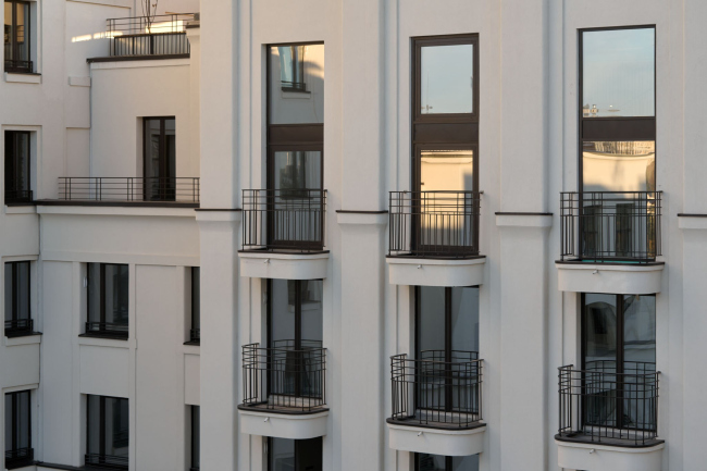 Особенностью проекта стал также сложный монтаж в условиях разнообразной геометрии фасадных элементов. Реализация архитектурных элементов, характерных для неоклассического стиля – балконов, карнизов, пилонов и округлых эркеров – потребовала разработки специальных технических решений. Граненые эркеры и французские балконы, которые архитекторы использовали для вертикального членения фасадов, создали особые требования к технологии монтажа. Для полукруглых элементов и эркеров была создана схема укладки утеплителя, прошедшая дополнительные объектные испытания.