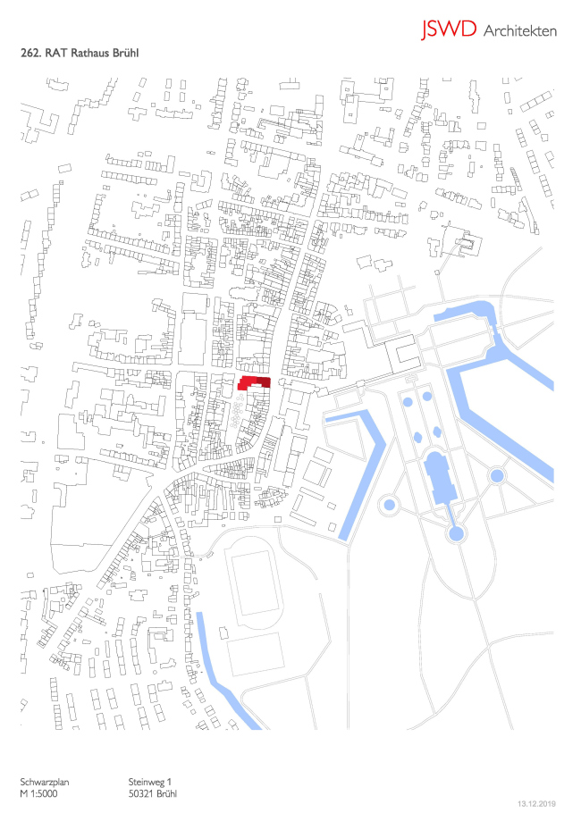 Конкурс на проектирование нового библиотечного корпуса и реконструкцию самой ратуши немецкого города Брюль бюро JSWD из соседнего Кельна, расположенного всего в 20 км, выиграло еще в 2017 году. Задача была не только заменить уже устаревшую пристройку 1960-х и привести в порядок ценный, охраняемый государством памятник, но и полностью реорганизовать прилегающую площадь Янсхоф (ее ранее почти полностью занимала парковка), изменив внутренние связи в этом совсем небольшом, но чрезвычайно важном фрагменте городской ткани.