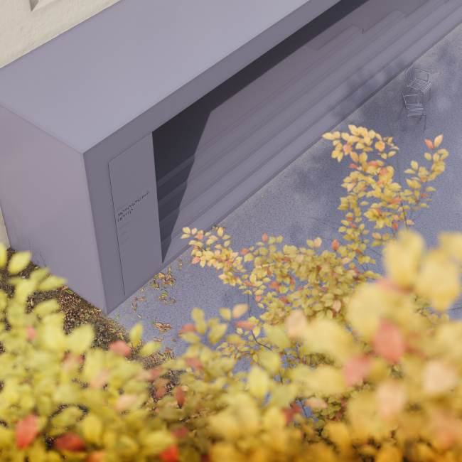 Парадная входная группа, организованная в виде широкого навеса с пандусом для маломобильных людей, образует привлекающую внимание доминанту. Фирменный цвет в оформлении входной группы и приглашающей площадки перед зданием подчеркивает идентичность центра.